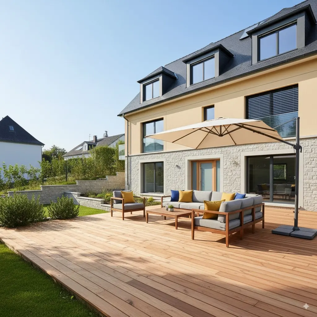 Genießen Sie Ihren Garten wie nie zuvor – mit einer hochwertigen Holzterrasse, die zum Verweilen und Entspannen einlädt. Wir planen und bauen Ihre Terrasse individuell, abgestimmt auf Ihre Wünsche und die Gegebenheiten vor Ort.